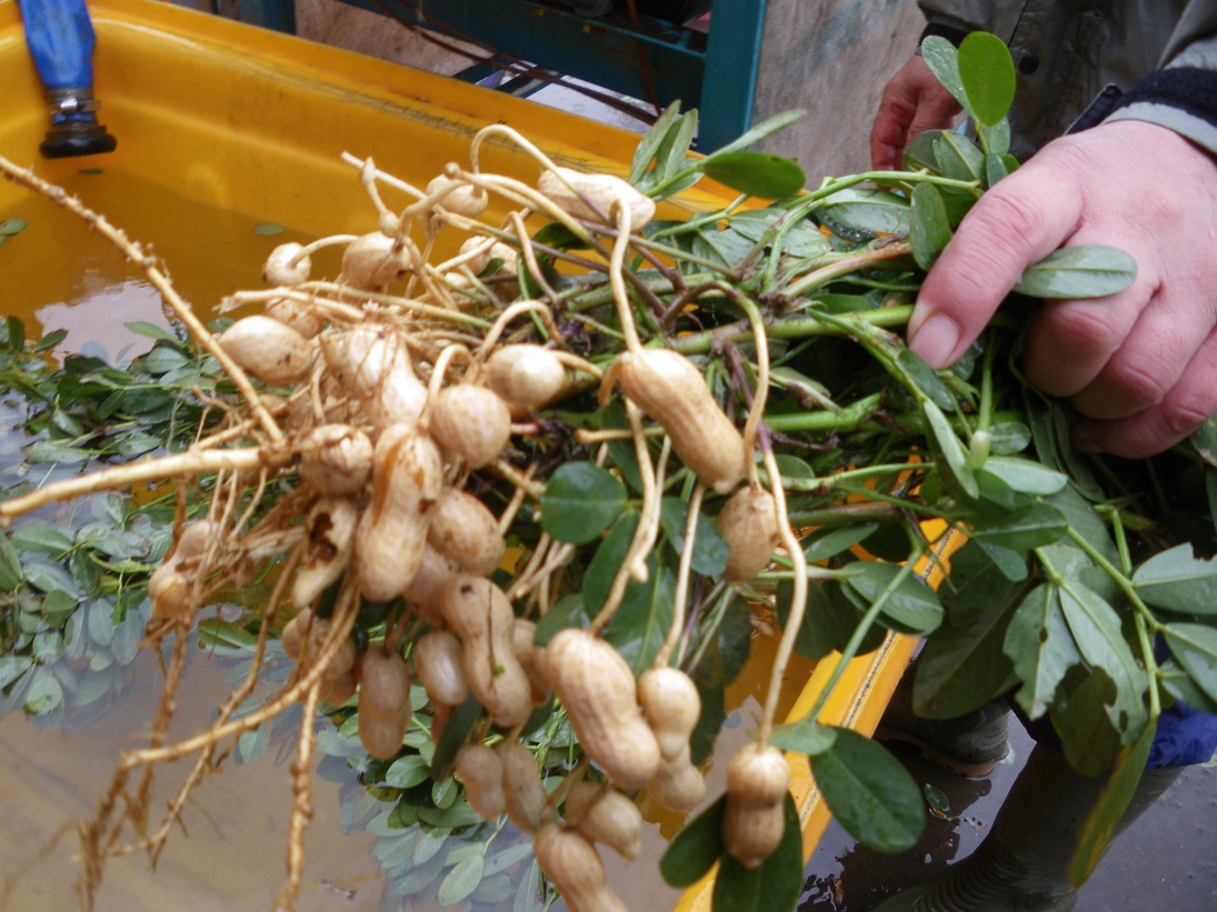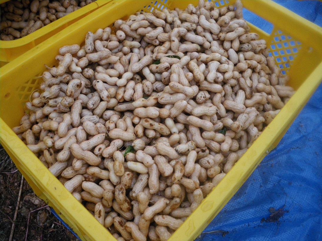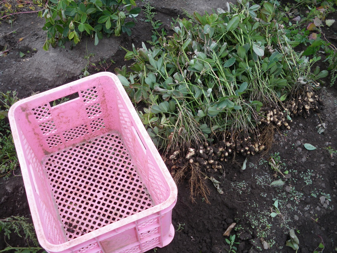 まずは、準備会の人達が収穫した後に残っているエリアのらっかせいをきれいに収穫。