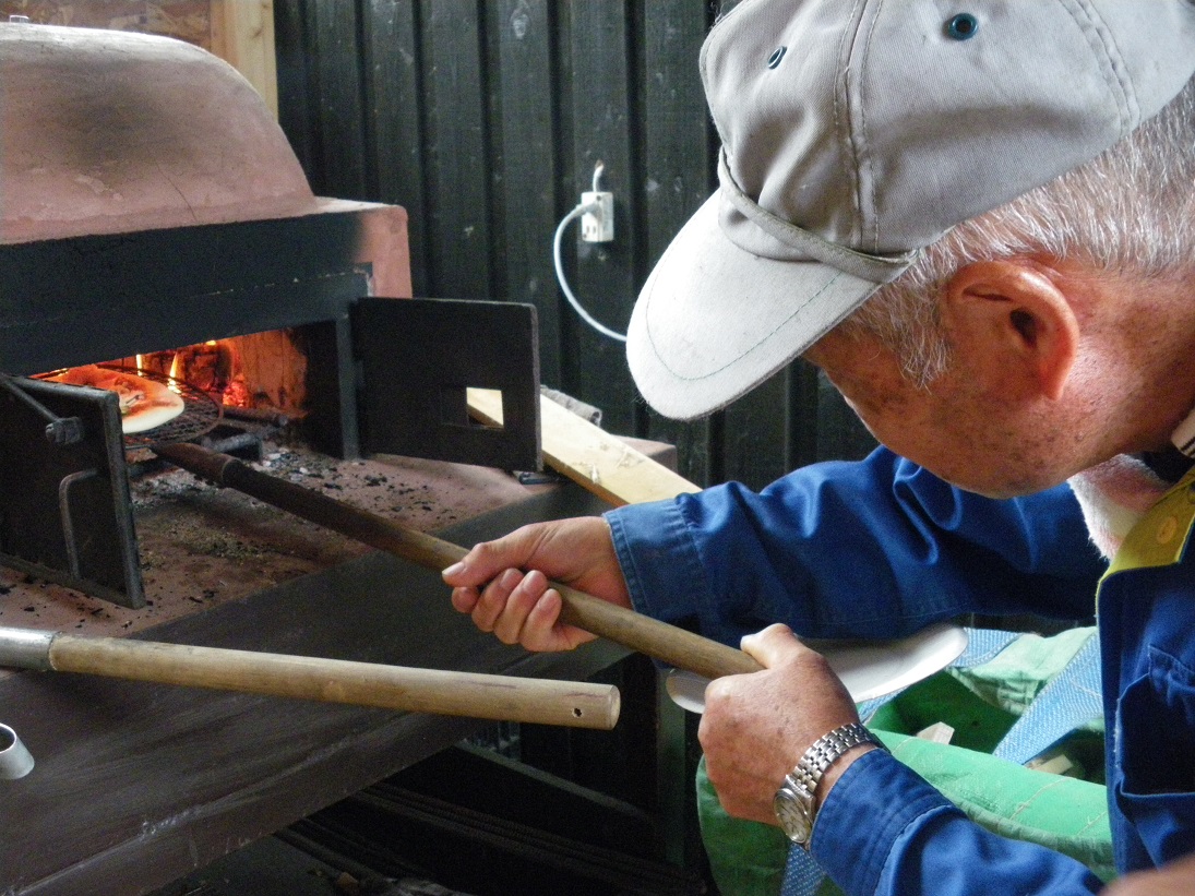思い思いに具材をのせて、石窯へ。
