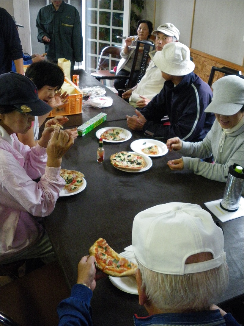 焼きたてのピザに舌鼓を打つ参加者の皆さん。