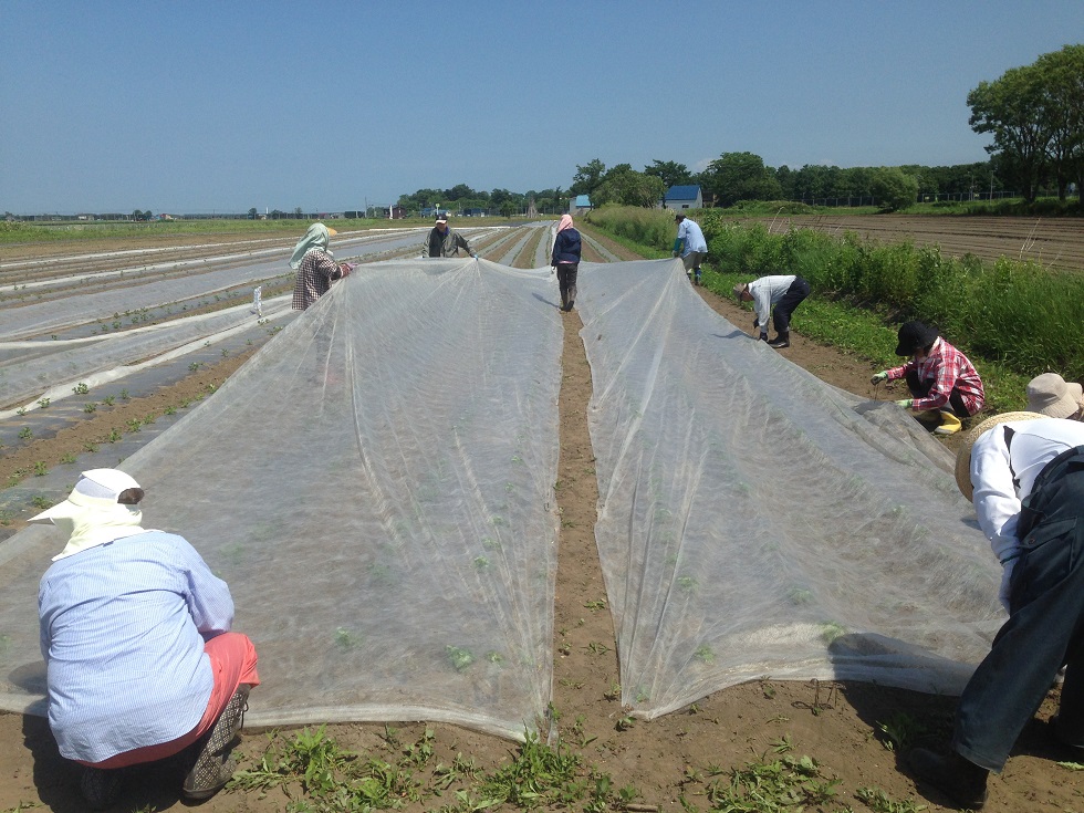 草取りが終わり、再び不織布をかけて本日の作業は終了です。