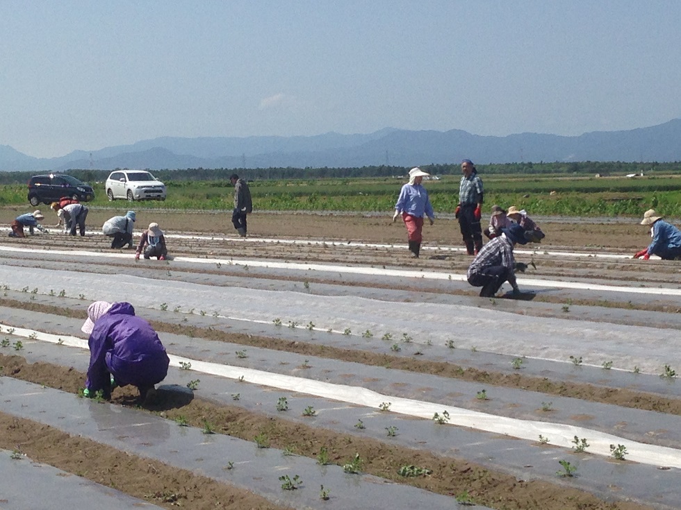 次回は7月9日(木)の予定でしたが、種まきの時期により生育速度にバラつきがあるため、7月1日(水)と7月9日(木)の2回に分けてマルチをはがして土寄せの作業を行うこととなりました。