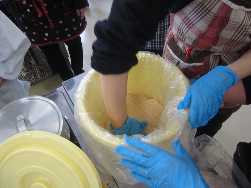 その石狩手づくり味噌の会の後藤さんがまず見本を見せてくれました。