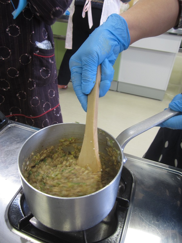 今回は調理実習ということでは無く、スタッフと先に作業を終えた人が手伝う…といった感じでした。