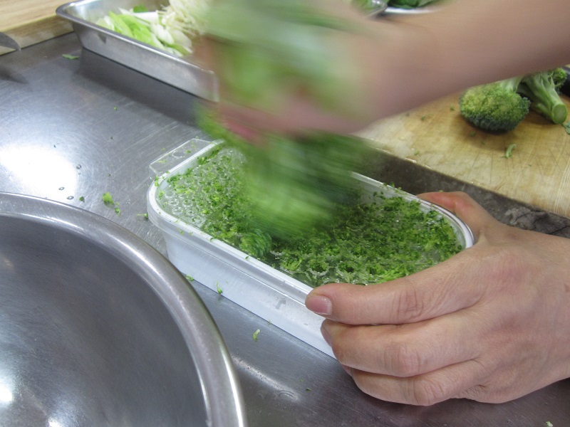 その他にも、ブロッコリーの葉のロールブロッコリーや、茎で作った塩蔵を試食で頂き、普段食べないで捨ててしまうような部分も、こんなに美味しく食べられるということを知ることができました。