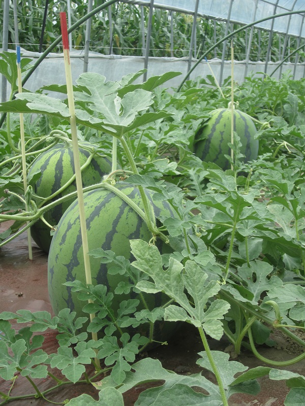 これは河合さんこだわりのスイカらしく、1株で1個だけ育てているとのこと。
