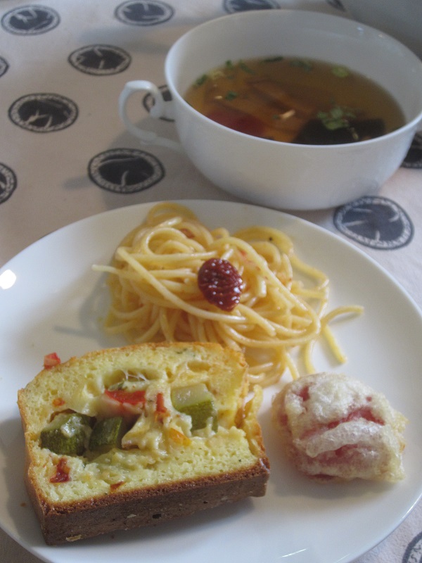パスタやケークサレ、マリネにフリッター、そしてスープと、トマト尽くしランチ、とても美味しくいただきました