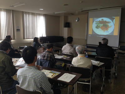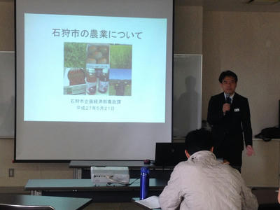自己紹介が終わったところで、石狩市の農政課の佐藤さんから石狩市の農業の歴史や農産物についてお話をしていただきました。