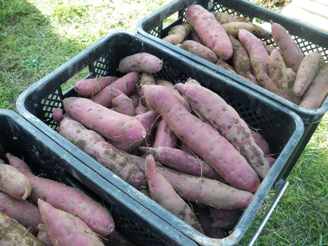 紅東、黄金千貫、パープルスイートロードなどが収穫されていました。