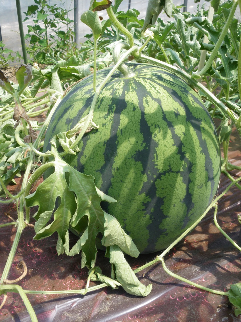 普通スイカと言ったら接木苗のものが多いのですが、河合農園さんでは種から栽培しているそうです。