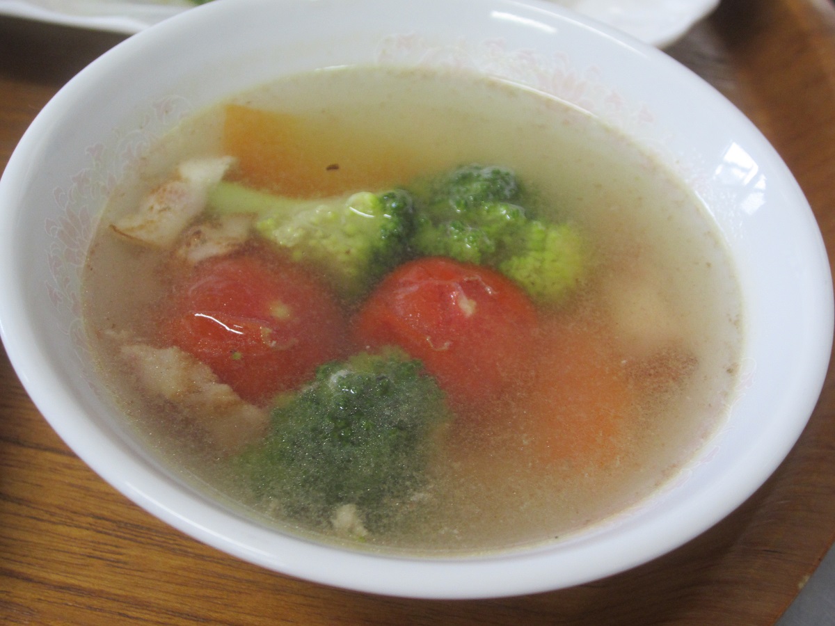 野菜の風味が優しくトマトの酸味が程よいアクセントで、非常に美味しいスープでした!