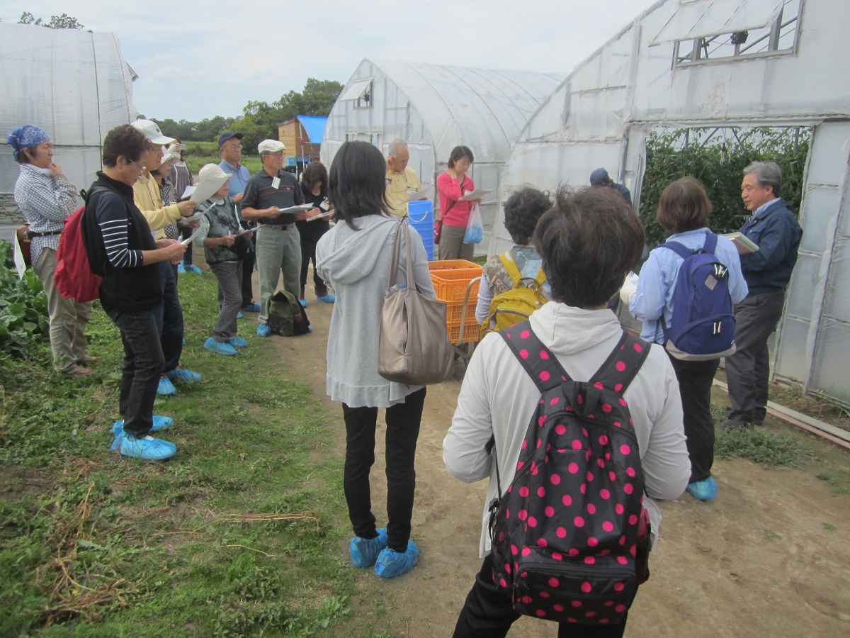 収穫体験後は、石狩市農業総合支援センターの臼澤さんのお話と、藤岡さんへの質問タイム。