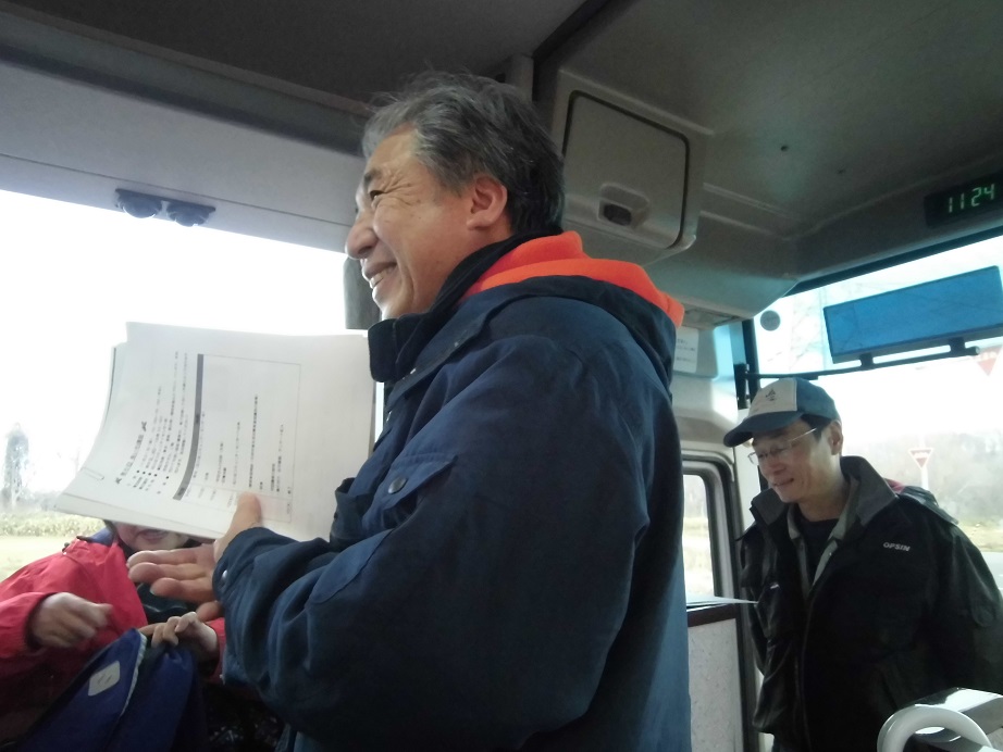 収穫作業後は、バスの中で石狩市農業総合支援センターの臼澤さんと、再度中田さんのお話を聞かせていただきました。