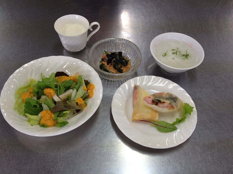 春巻きは具だくさんで長いもはホクホク。