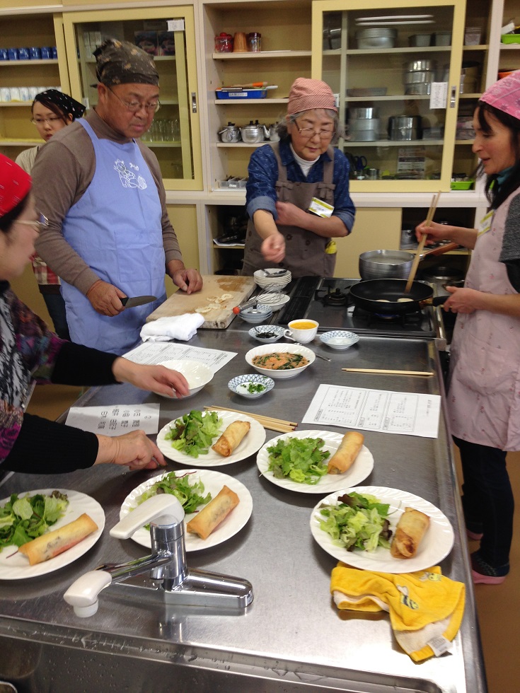 まずは、講師の方々に調理の仕方を教えていただきます。