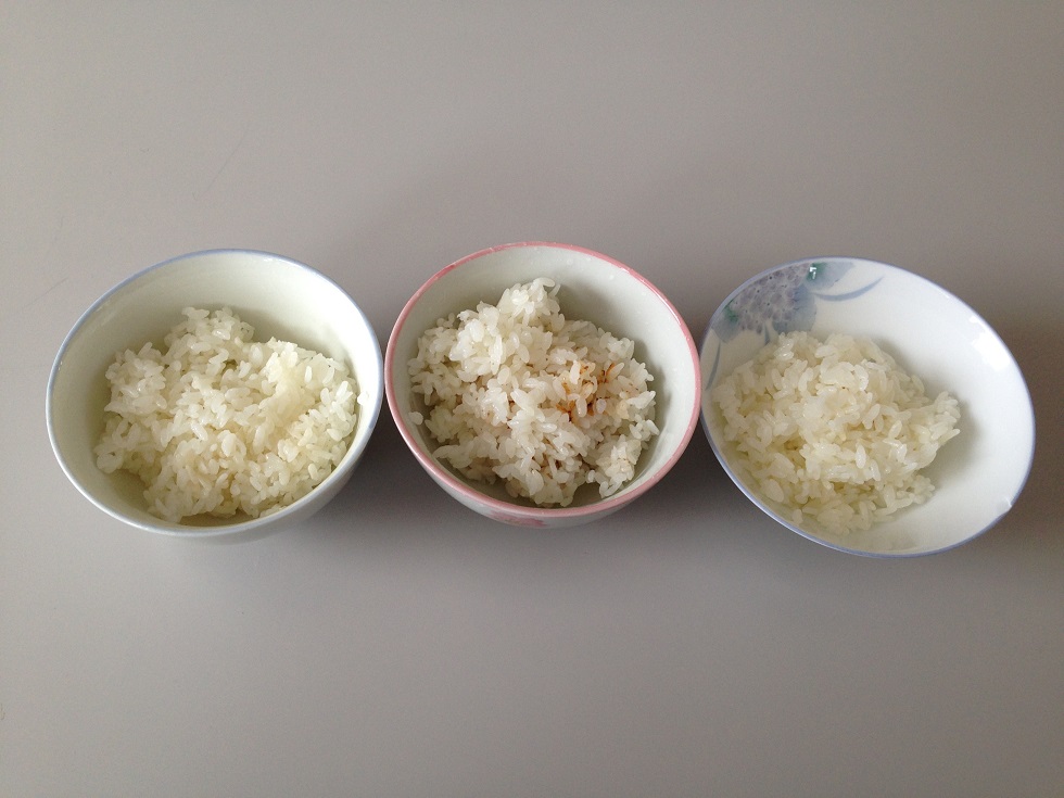 3種類のお米を食べ比べて、自分の好みのお米はどれなのか話していました。