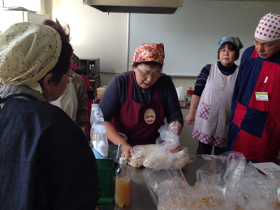 前回のにしん漬け講座の際に各自大豆を1kgずつ持ち帰っていたので、本日はそれを煮た状態で持ってきてもらっていました。
