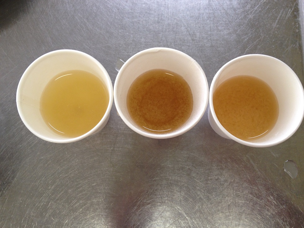 1人3つ、それぞれ違う味噌をお湯で溶いたものを飲み比べです。