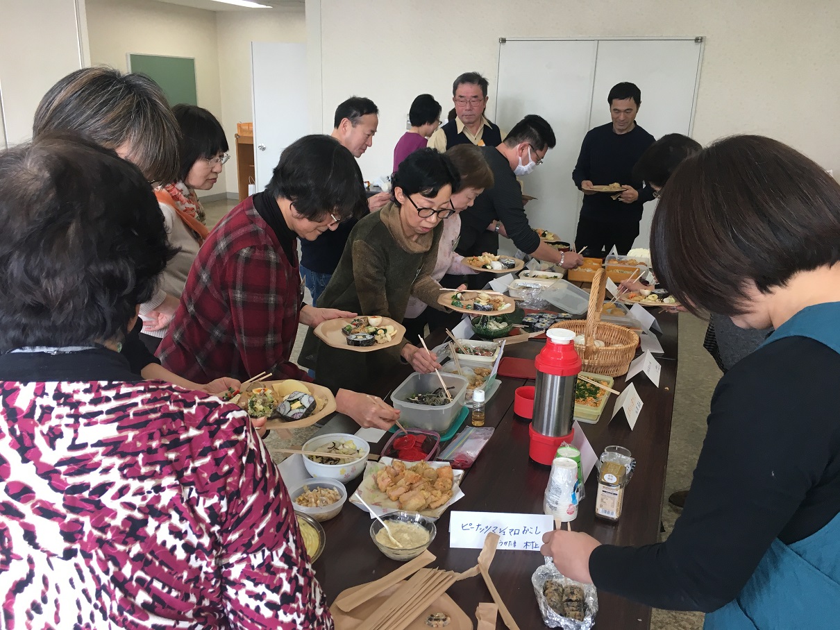 皆さんが一品ずつ持ち寄った野菜を使った料理がズラリと並びます。