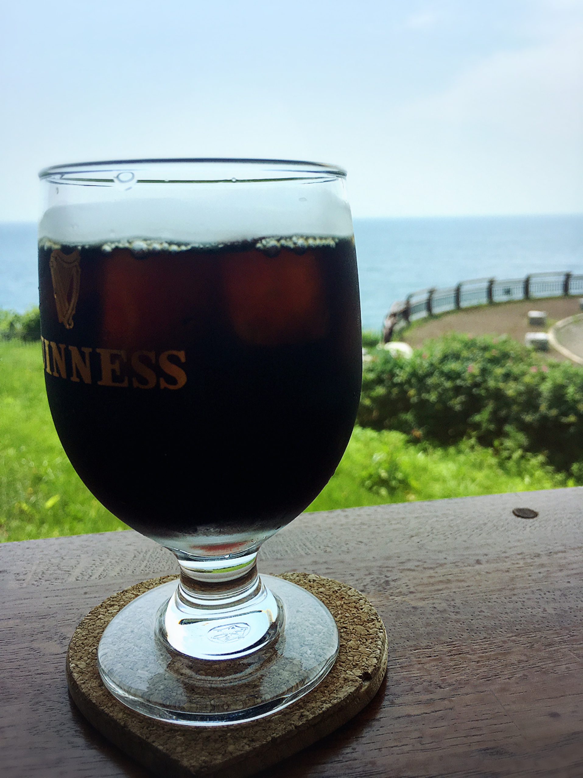 食後は時間があったので、海を眺めながらアイスコーヒーを……。