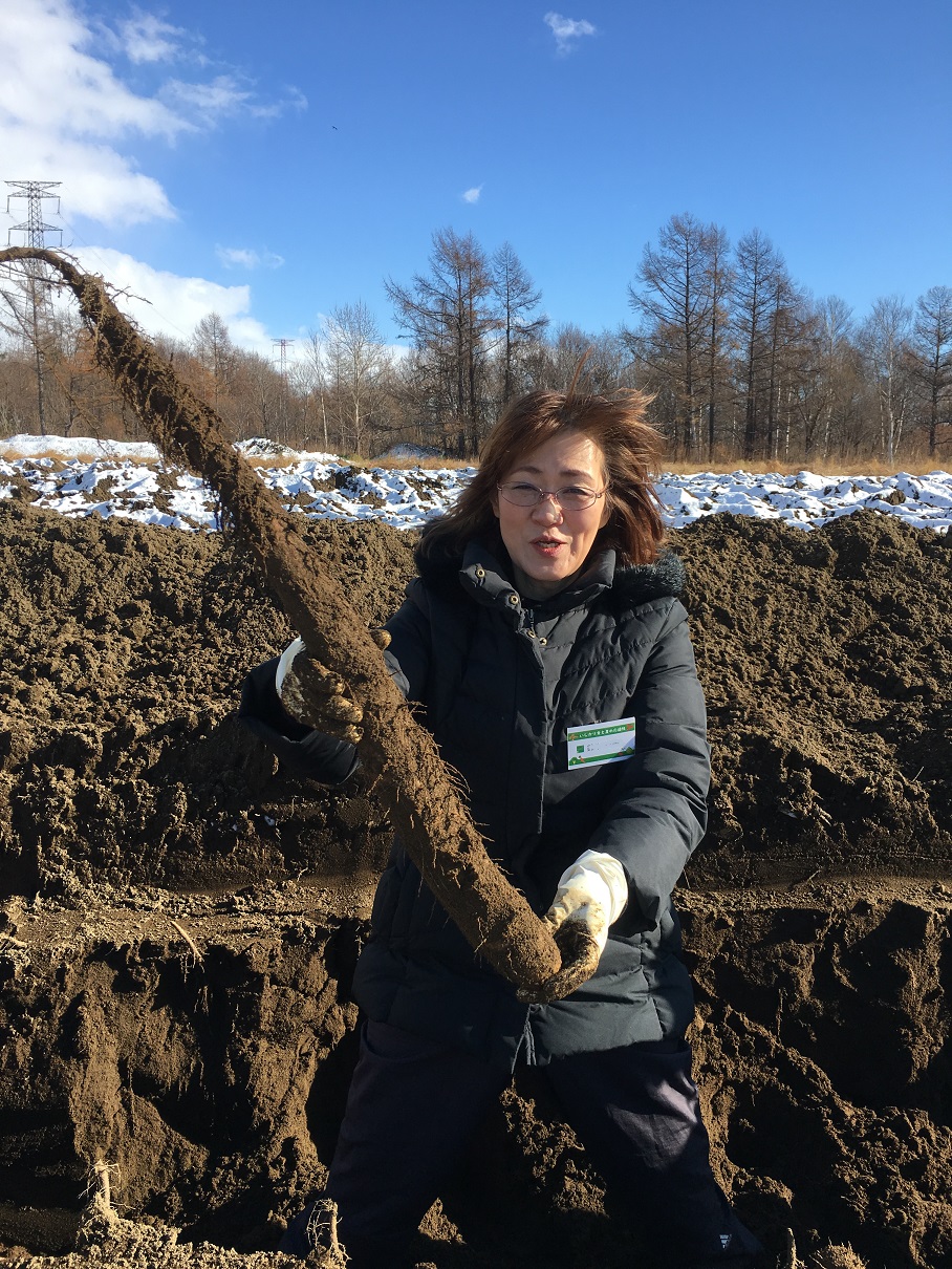 しかも、長いもは春からこの雪が降る季節まで、いちばん栽培期間が長い作物ということで・・・。