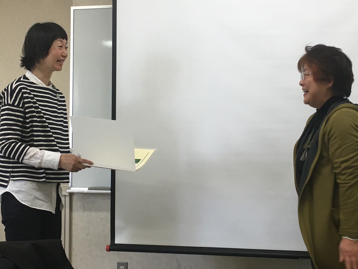 毎回講座でいろいろなお話をしてくれた石狩市農業総合支援センターの臼澤さんからもお祝いの言葉をいただき、最後に記念撮影をしました。