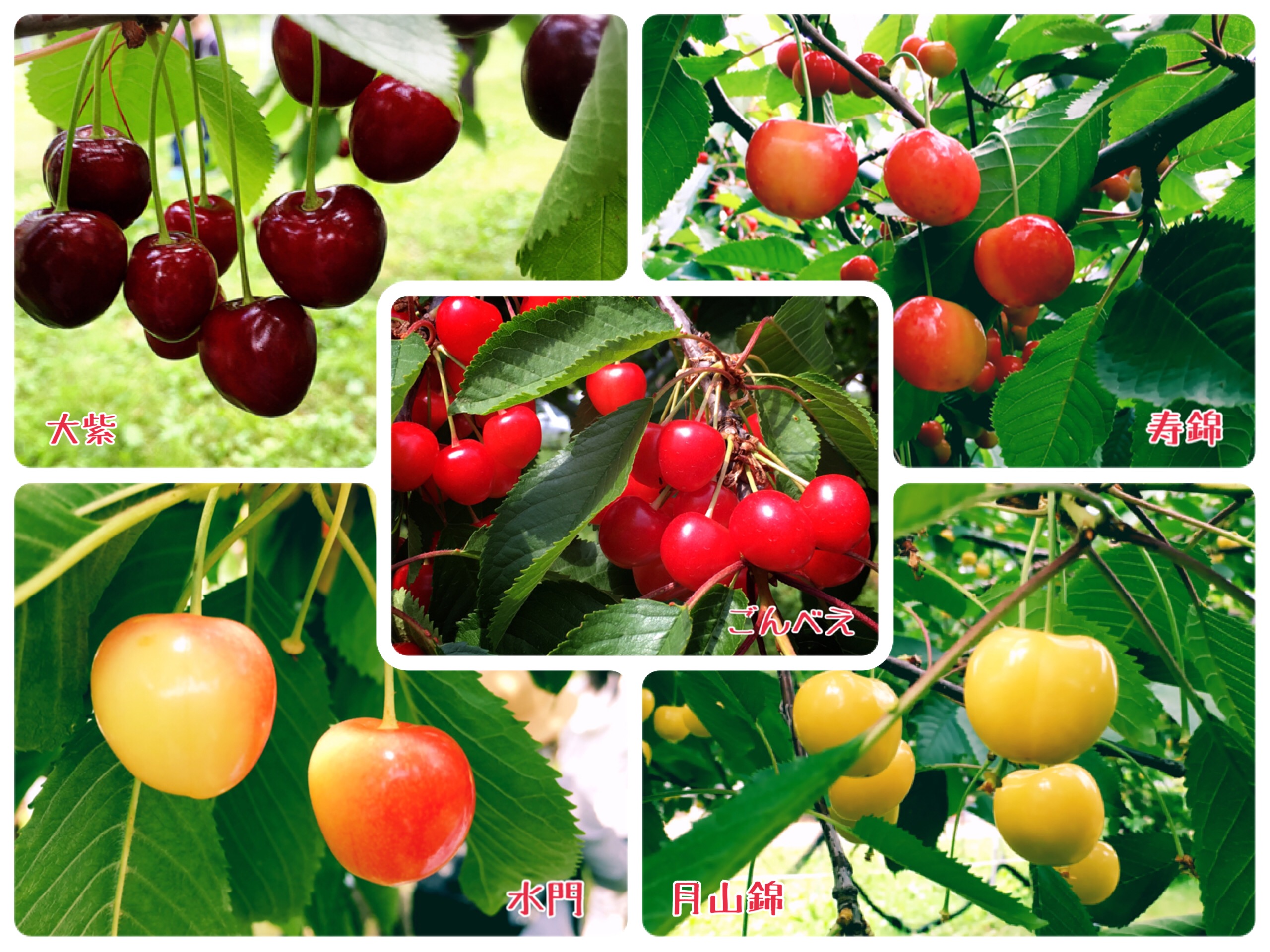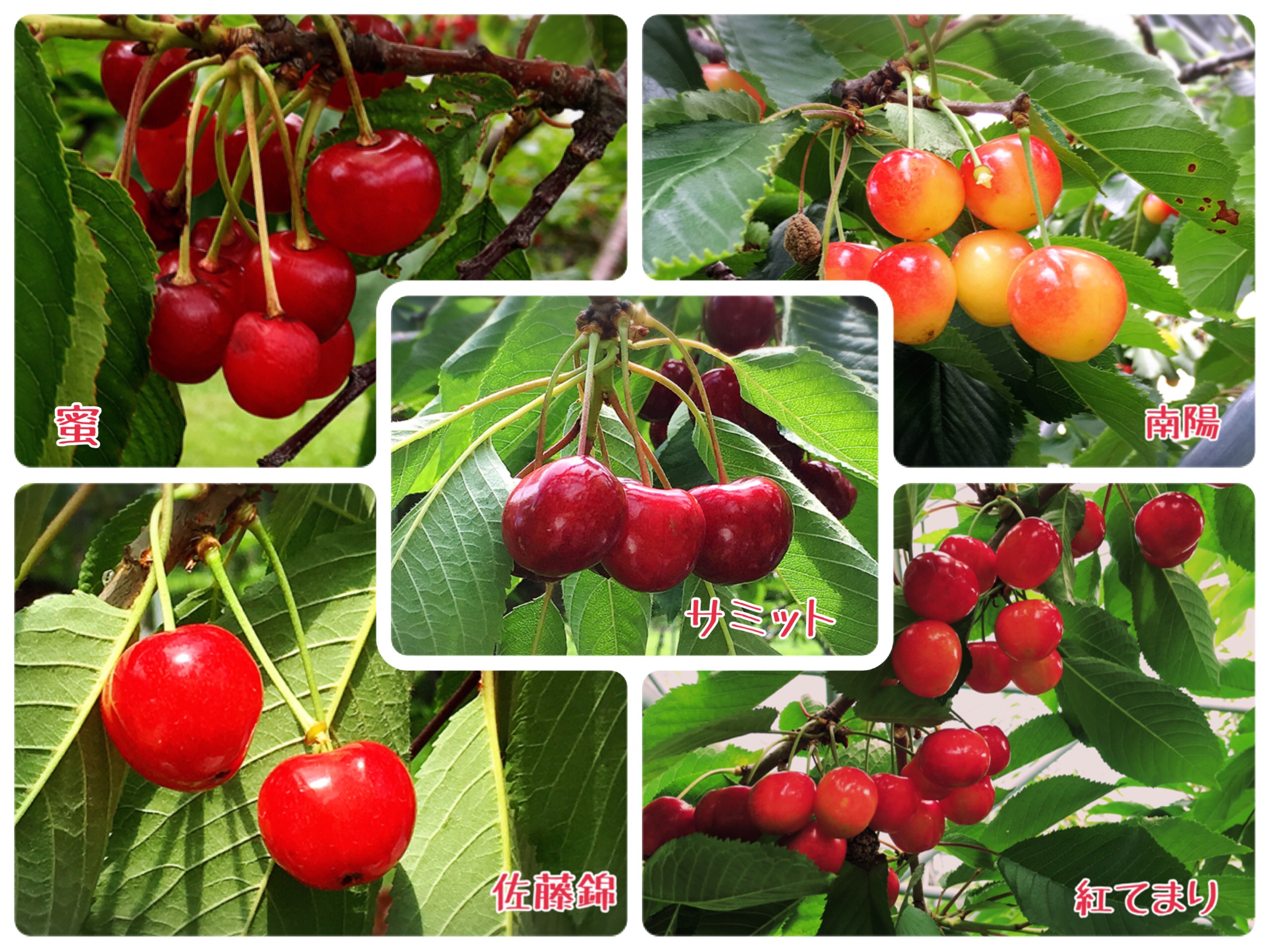 「さくらんぼ」と一口に言っても、その写真でも分るとおり品種によって味も見た目も違います。