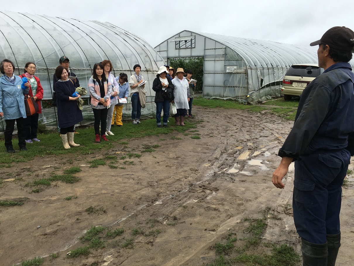 ブロッコリー、メロン&さくらんぼ、にんじん・・・と、曇ってもギリギリのところで雨にはあたらなかったのですが、ついに雨の現地学習となってしまうのか・・・・・・といった微妙な天気