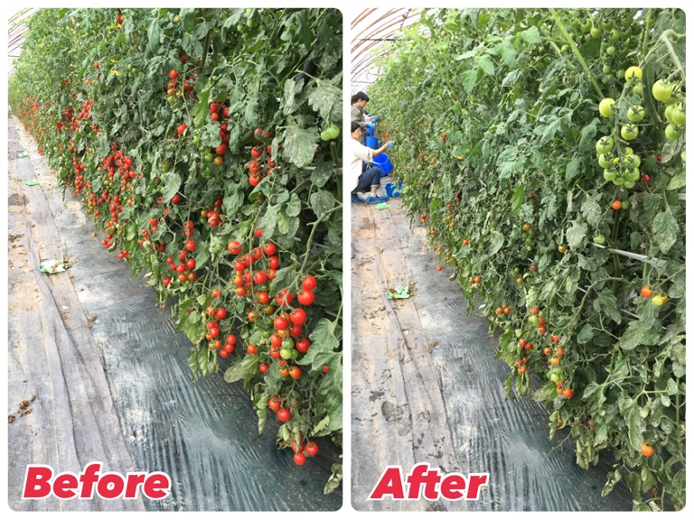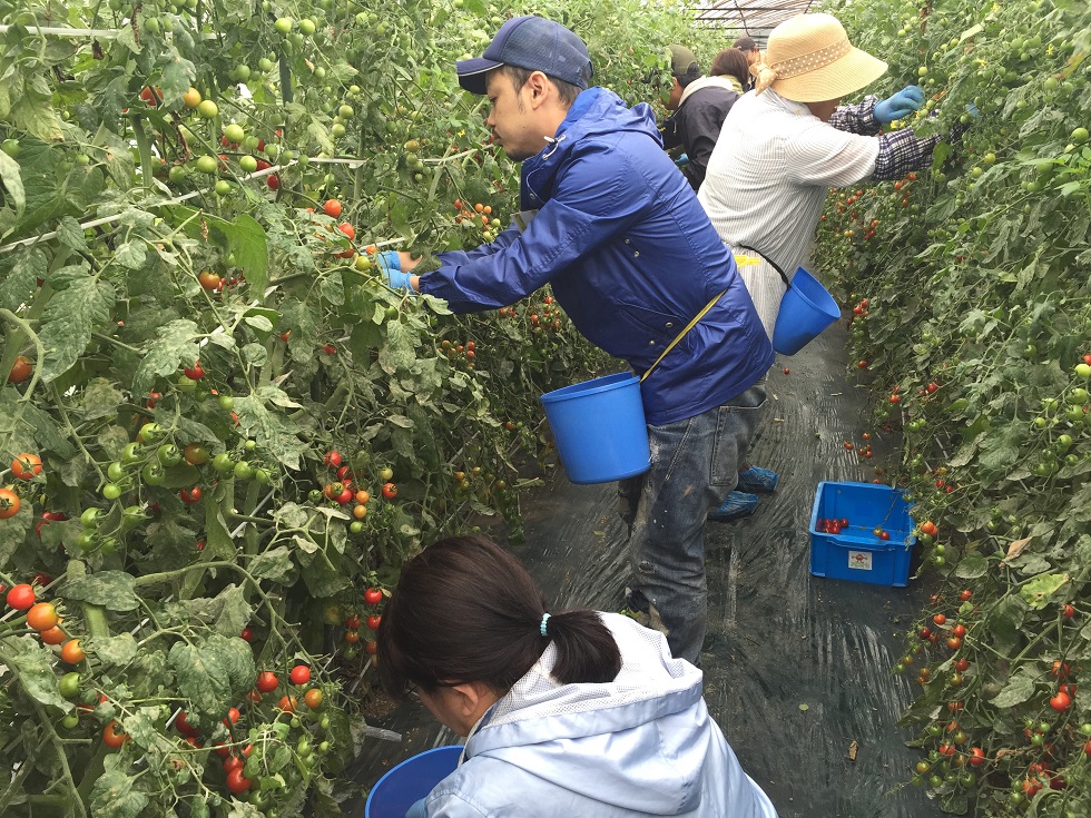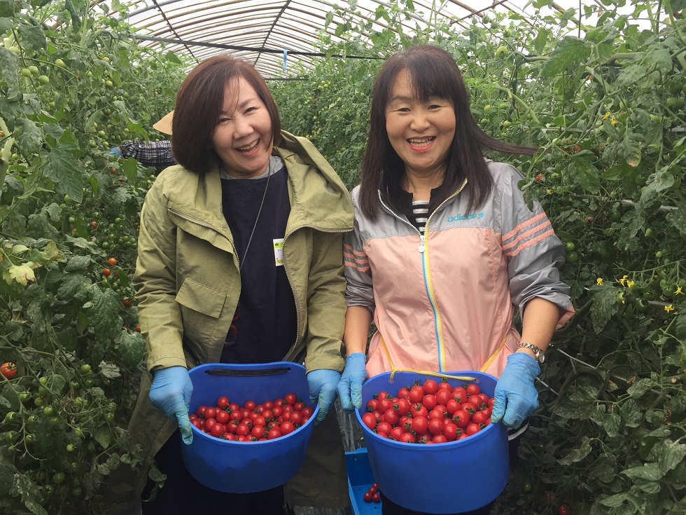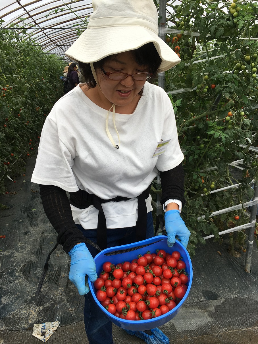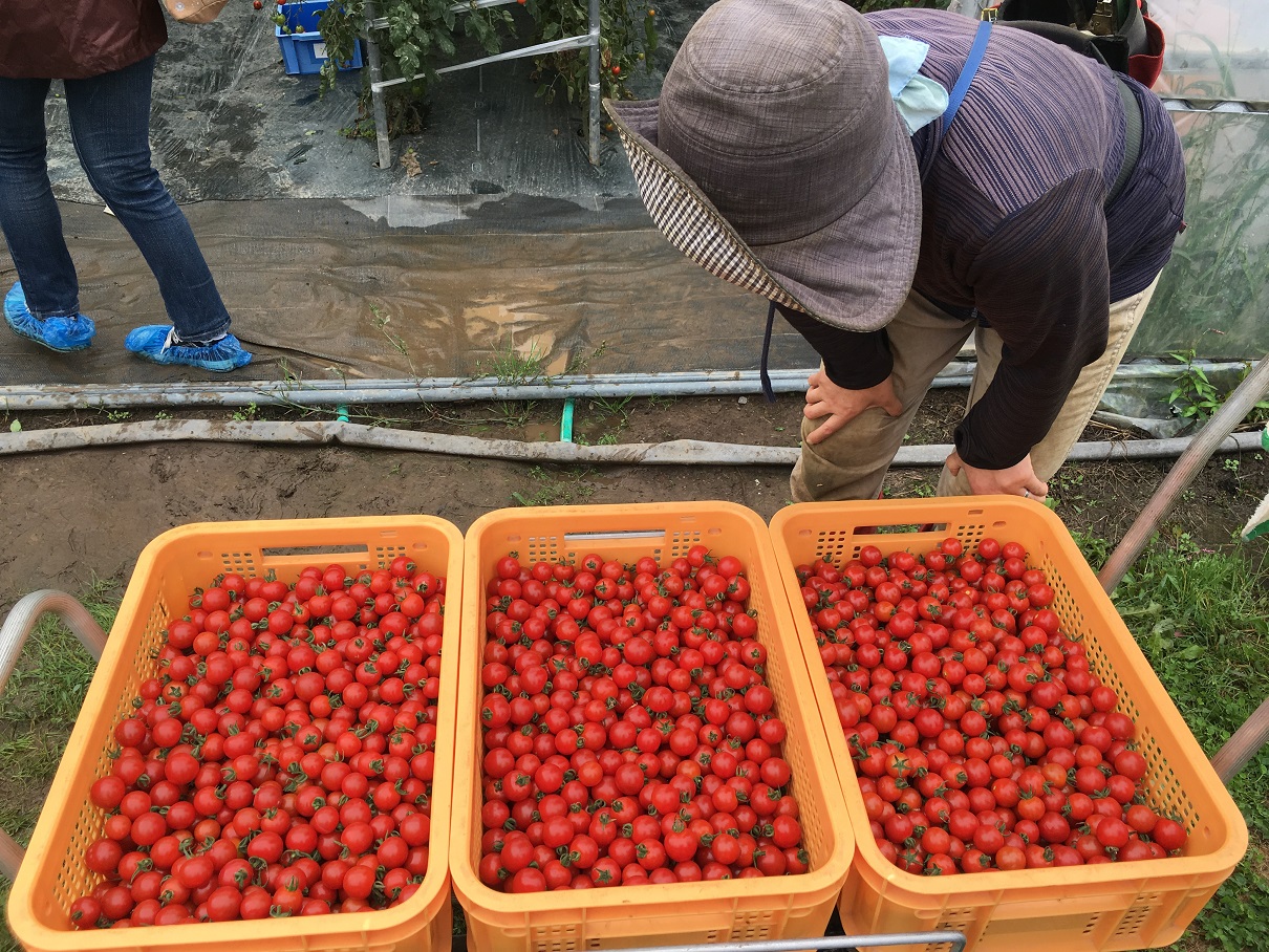 わずか20分ほどの時間で、50kgほどのミニトマトが収穫できました
