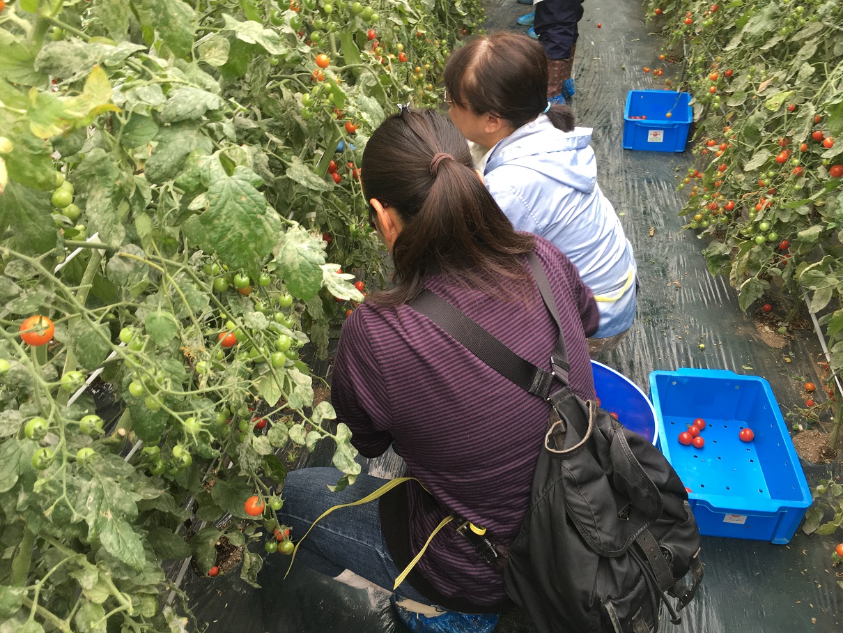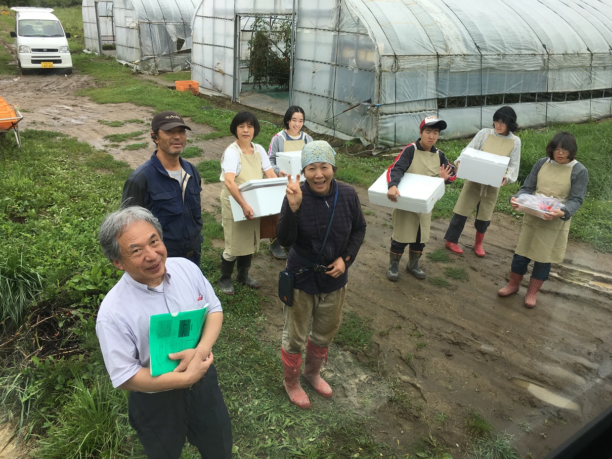 今日の現地学習は、石狩市高岡地区にある藤岡農園さんのハウスでミニトマトの収穫です