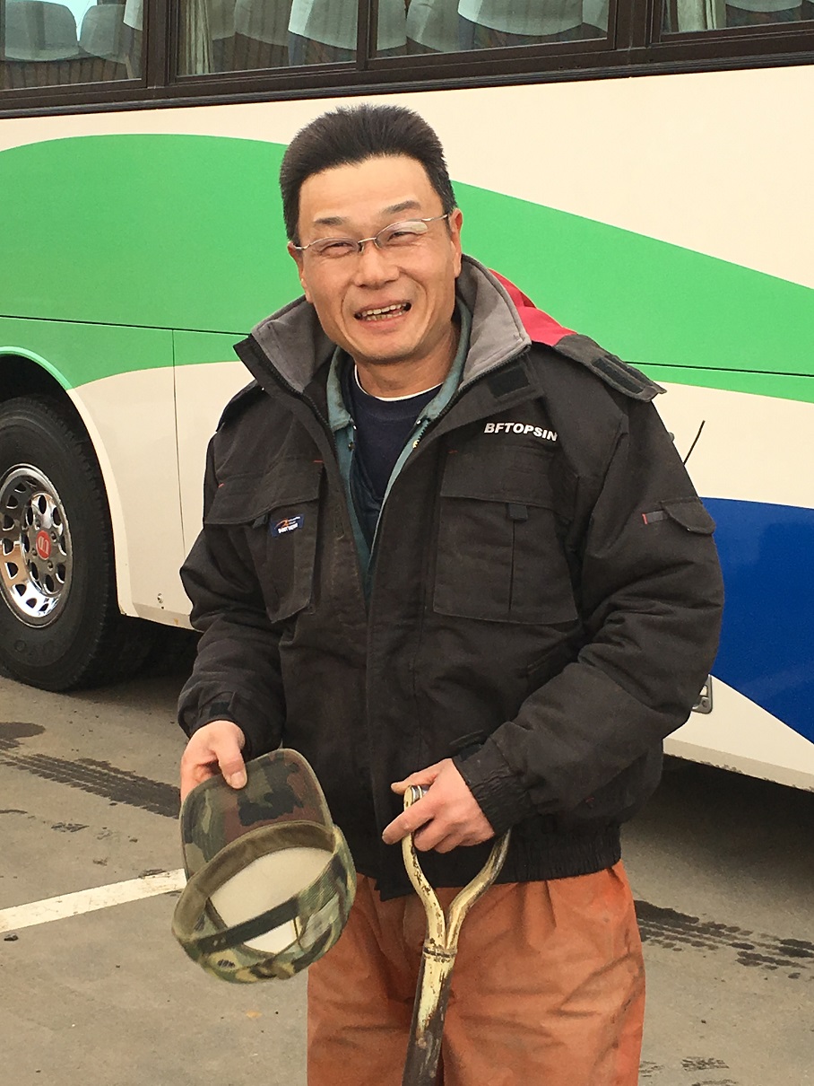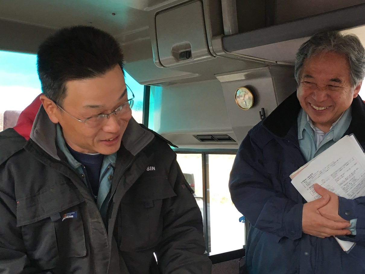 あまりの寒さに、バスの中に移動してから栽培についてお話を聞かせていただきました。