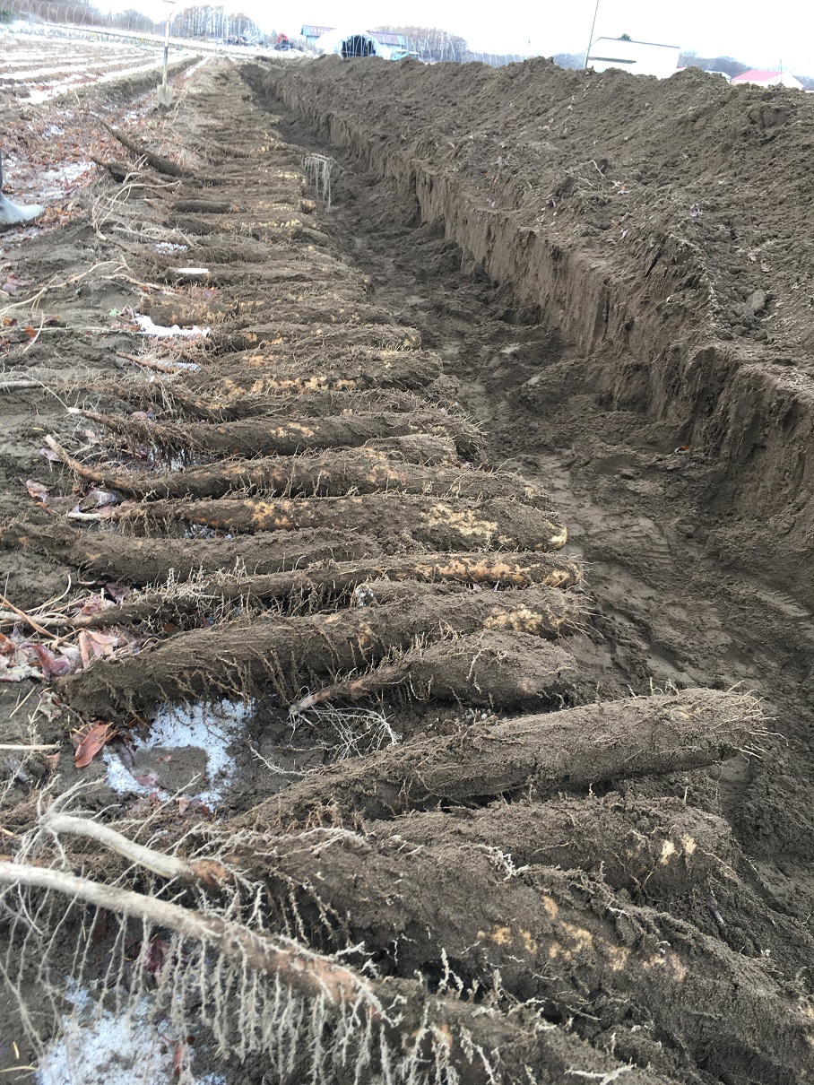 あっという間に収穫を終え、溝の脇には長いもがズラリ。