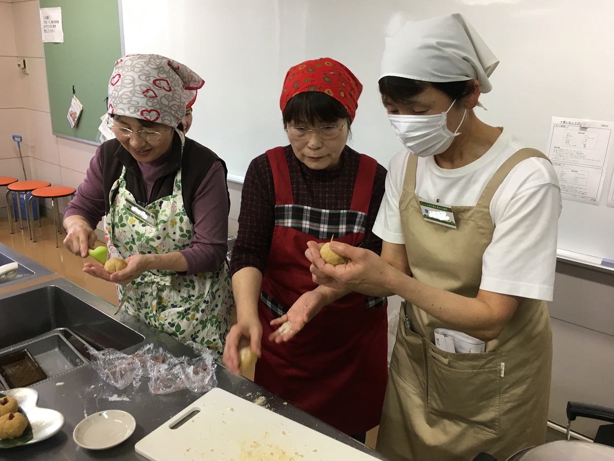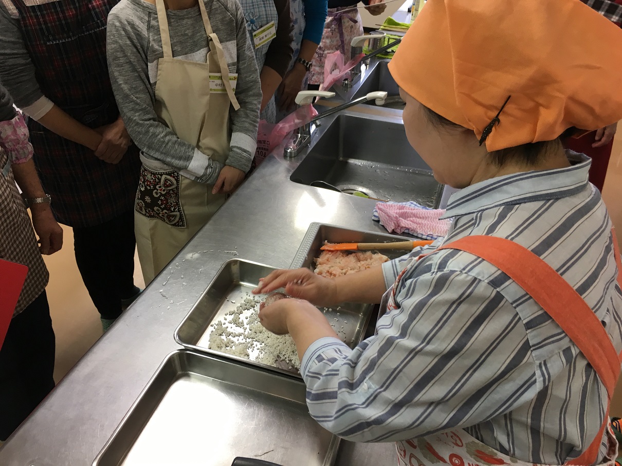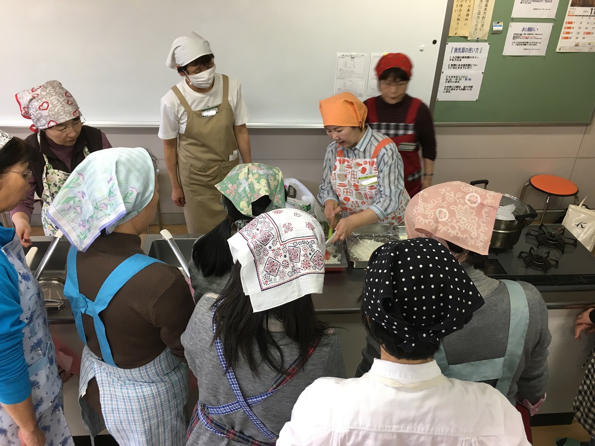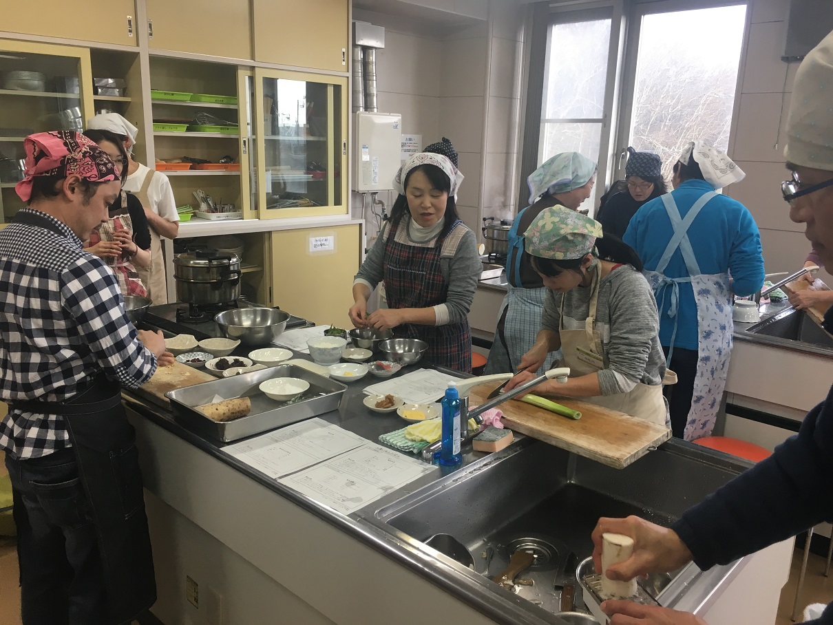 場所を北コミに移りまして、長芋を使った調理実習とまいります