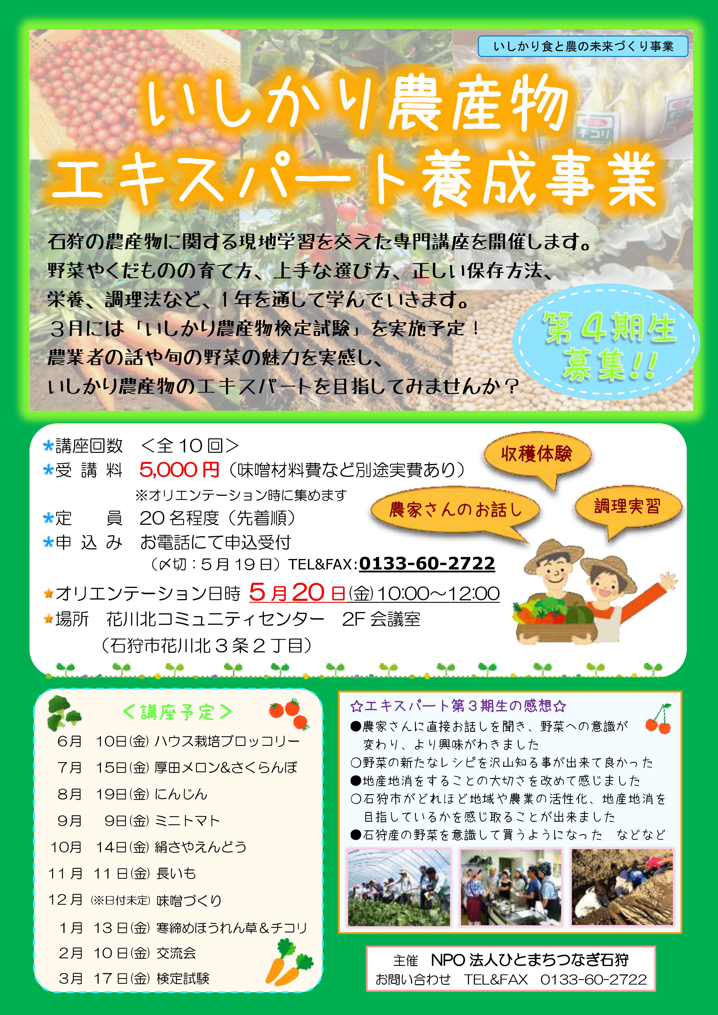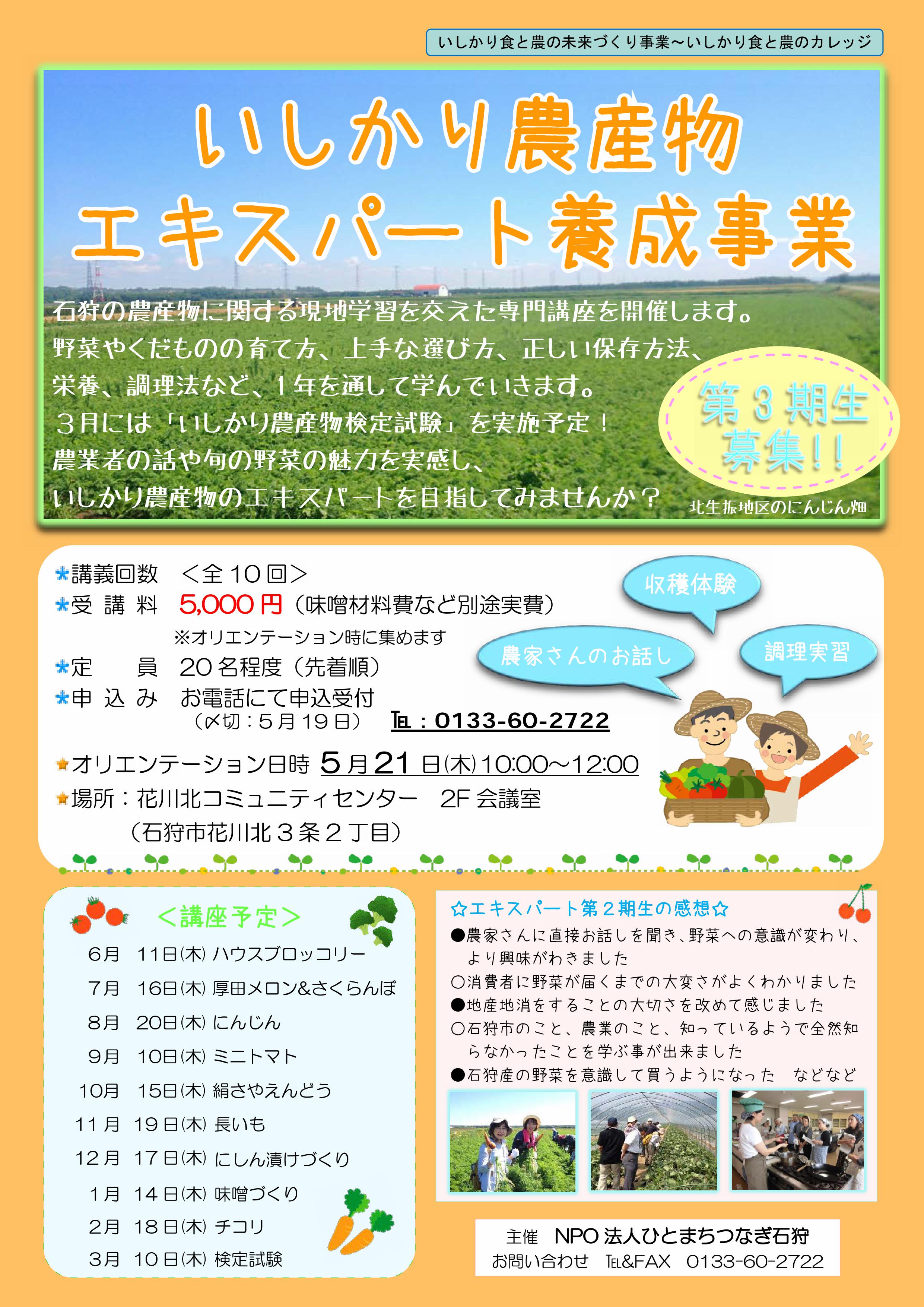 いしかり農産物エキスパート養成事業 第四期生募集!
