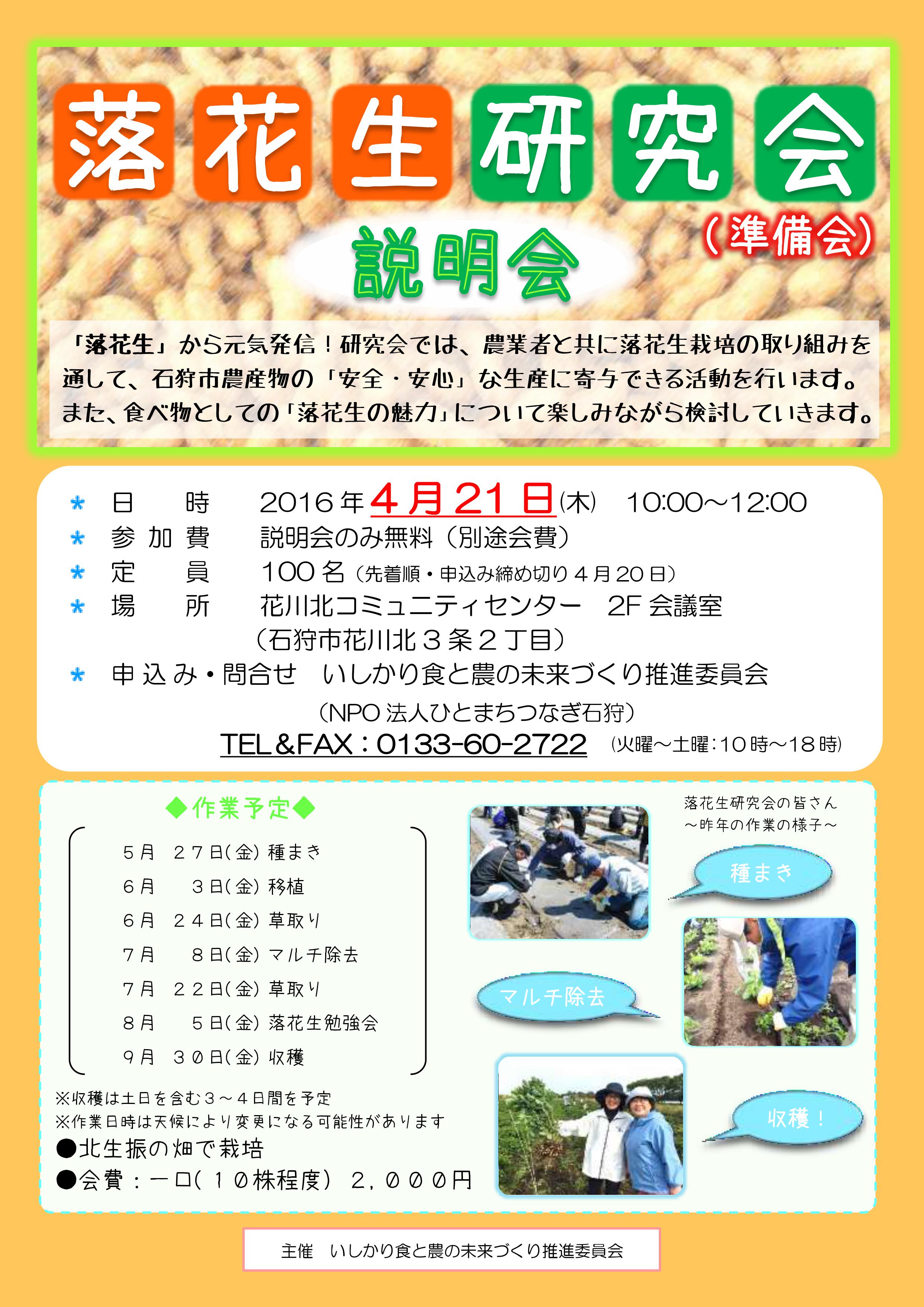 研究会では、農業者と共に落花生栽培の取り組みを通して、石狩市農産物の「安全・安心」な生産に寄与できる活動を行います。