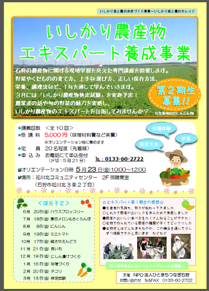 いしかり農産物エキスパート養成事業 第三期生募集!